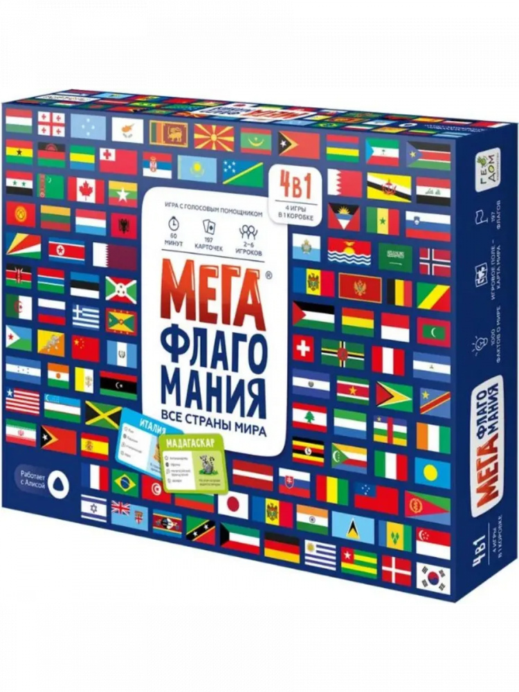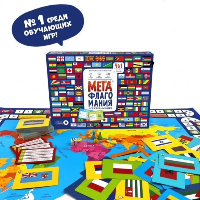 Настольная игра "МегаФлагомания" – это увлекательное географическое приключение, которое позволит детям и взрослым изучить флаги, столицы и страны мира в игровой форме! Эта интеллектуальная игра объединяет всю семью, делает обучение легким и захватывающим, а также помогает развивать память, логику и эрудицию.