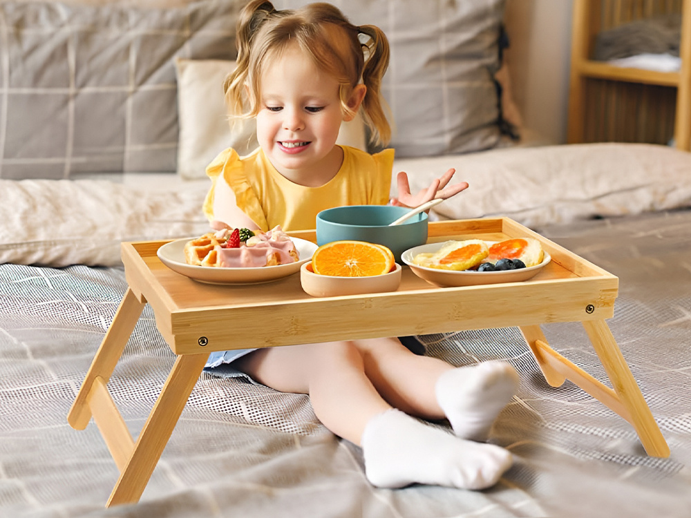 - трансформируется в поднос за счет складных ножек.
